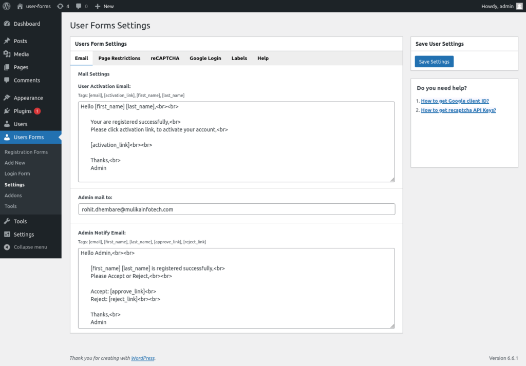 Configure MIPL WP Users Forms