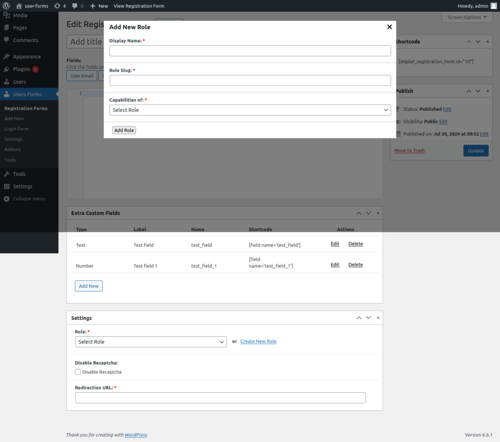 To save the form settings, click on the “Add New Role” button if you want to create a new role for the form, and then create the new role.