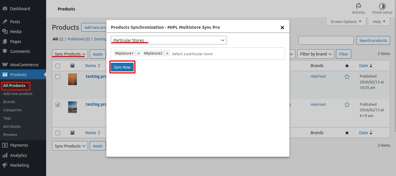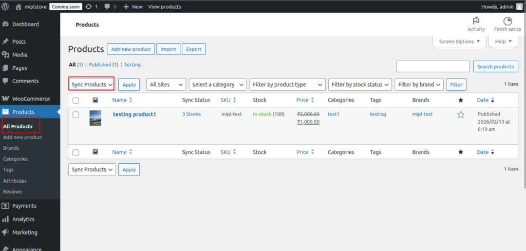 - Go to WooCommerce → Sync Stores.