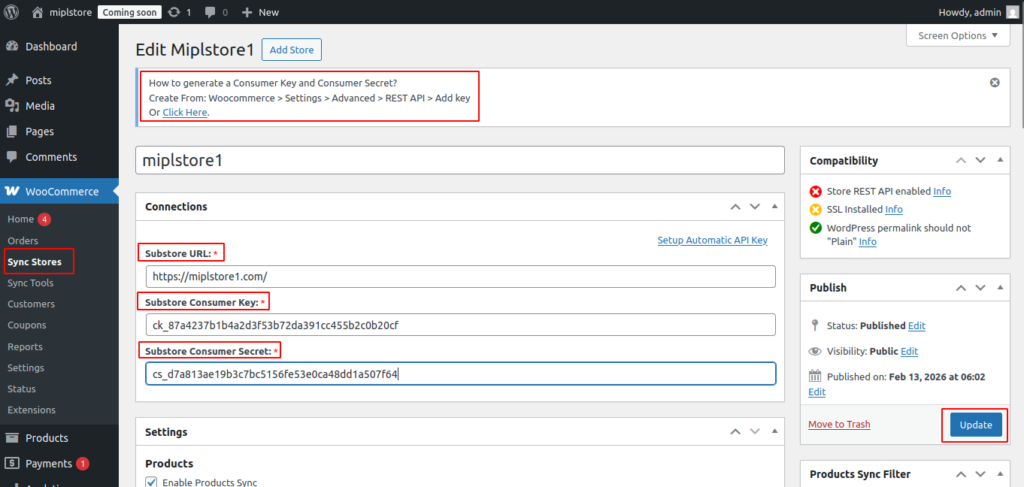 Go to WooCommerce → Sync Stores → Edit Store.
