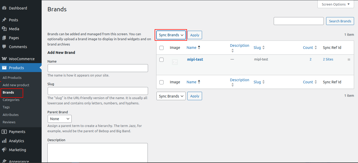 To enable this sync setting, follow these steps: Go to WooCommerce → Sync Stores → Edit Store → Settings ->Generate Missing Brands.