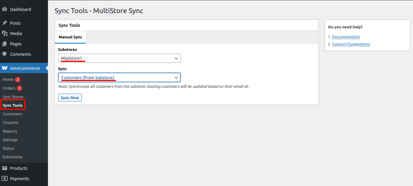 Then click Sync Now to start syncing customers from the substore to the main store.