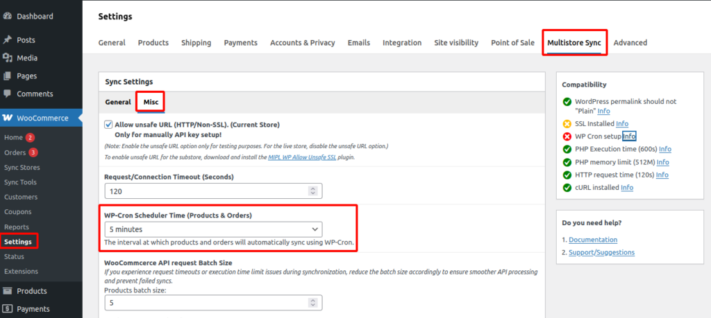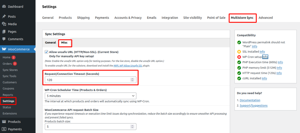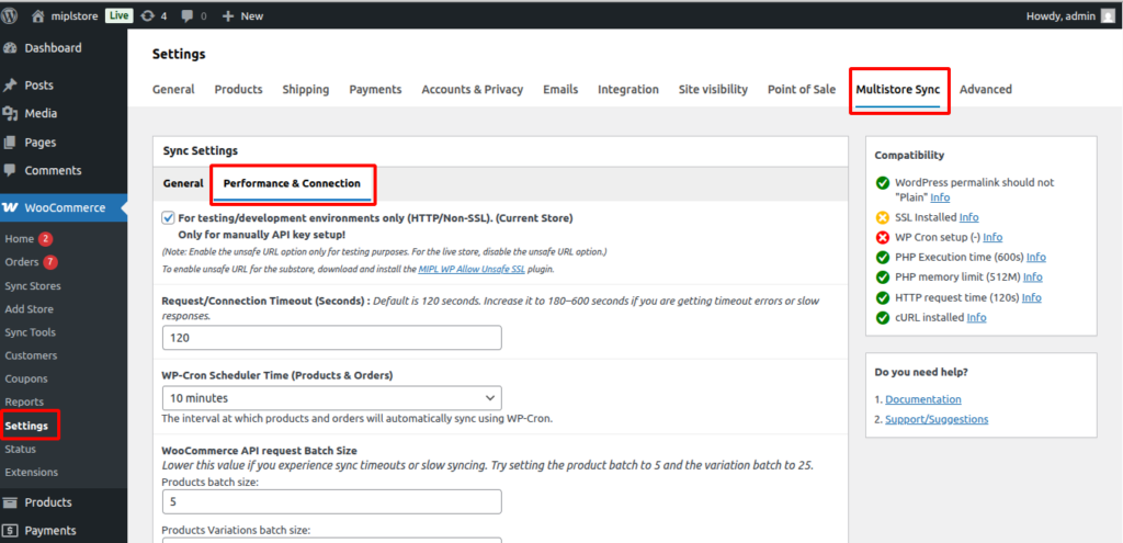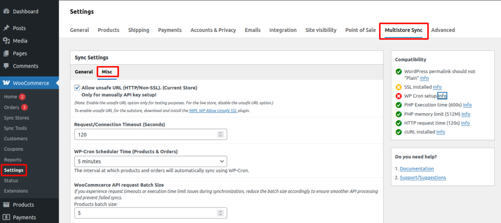 You can check compatibility by going to WooCommerce → Settings → Multistore Sync → Compatibility.